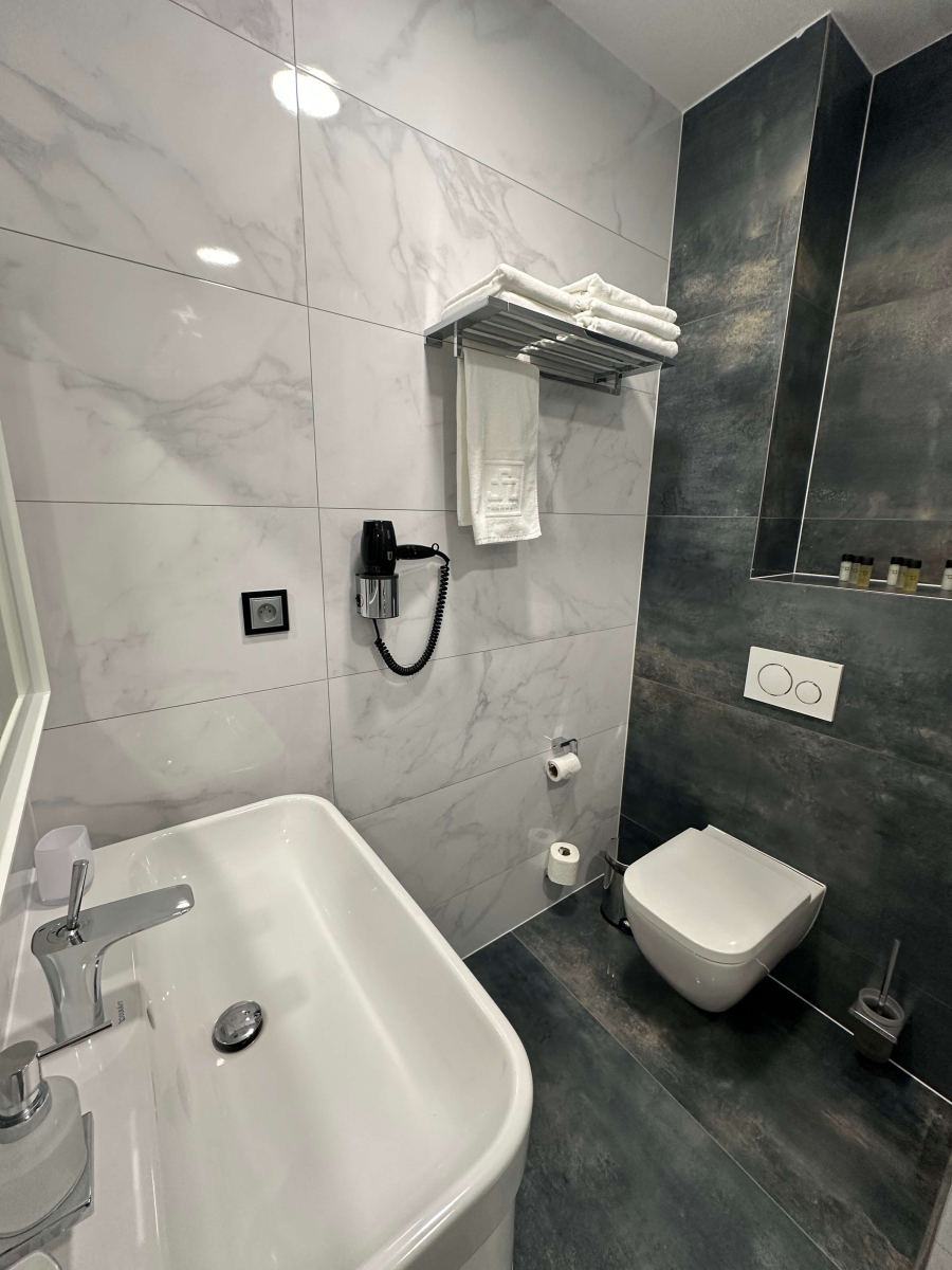 čajová kanvica, fén na vlasy, minibar, ohrievač uterákov, písací stôl, prístup k Wifi, sprcha, telefón, televízor s plochou obrazovkou, terasa